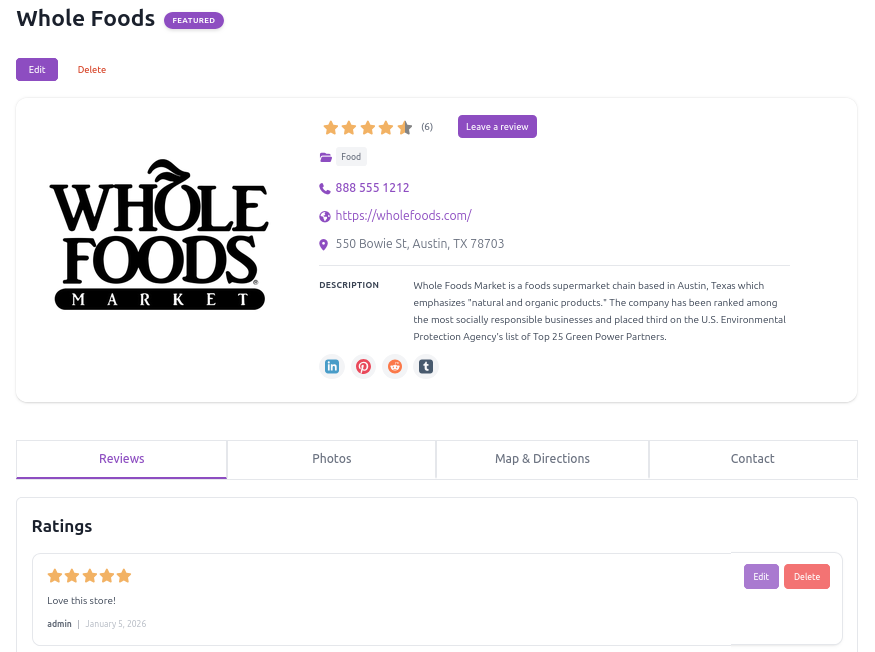Mobile compact is the perfect theme if you have a business site that primarily is accessed on mobile. Compact icons and tight displays make listings easy to read.